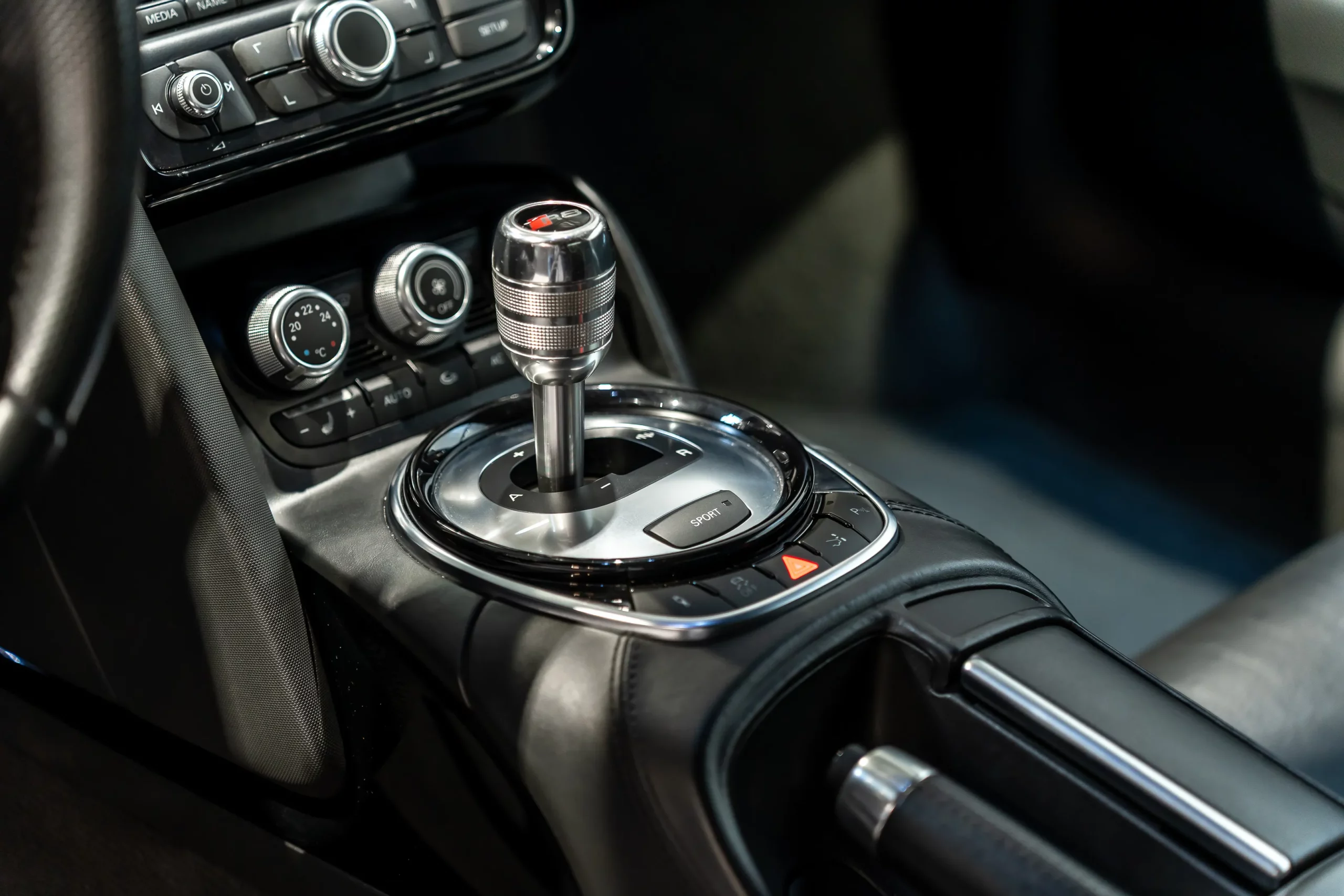 - Console centrale en cuir